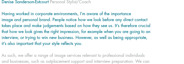 Intro Damson Belle is an Image Consultancy based in London, founded and run by Denise Sanderson-Estcourt. |